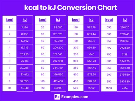 • Create a Conversion Chart: If you frequently need to convert between kcal and kJ, create a simple chart with common values. For example: