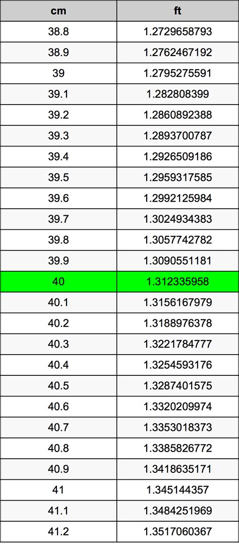 Hey there, curious minds! Ever wondered how long 40 centimeters actually is when you measure it in feet? Well, you’re in luck! We’re diving headfirst into the world of measurement conversions, specifically focusing on 40 cm to feet . This guide is designed to be your go-to resource, breaking down the conversion process in a way that’s easy to understand, even if you’re not a math whiz. We’ll explore the basics, provide you with the exact conversion, and even give you some real-world examples to help you visualize just how long 40 centimeters truly is. So, buckle up, and let’s get started on this exciting journey of measurement conversions! This article will not only tell you the answer, but also explain the how and why. Understanding the conversion from centimeters to feet is incredibly useful in a variety of situations. From everyday tasks like measuring furniture to more complex projects like DIY home improvements, knowing how to convert these units can save you time and headaches. Moreover, it allows for better communication and understanding across different measurement systems, which is particularly important in today’s globalized world. Whether you are a student, a professional, or just someone who is curious, this guide is designed to make the conversion process simple, efficient, and informative. By the end of this article, you will not only know the equivalent of 40 cm in feet but also gain a solid understanding of how to perform similar conversions. Let’s get started and demystify the process together. This knowledge will serve you well in various aspects of life, making measurements a breeze! Let’s get to it, guys!