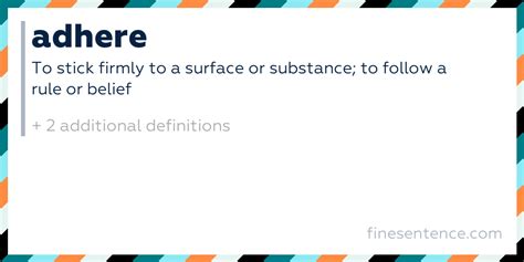 At its heart, the word “adhere” generally means to stick fast to (a surface or substance) or believe in and follow the practices of . Think about it – it’s all about attachment , both physical and metaphorical. When something adheres, it’s sticking closely, not easily separating. This can be as simple as a sticker adhering to a wall, or as complex as a person adhering to a strict set of principles. The key concept is closeness and commitment . It implies a strong connection, whether it’s between two physical objects or between an individual and an idea, belief, or set of rules. We often use “adhere” when we want to convey the idea of following something closely, without deviation. It’s not just about passively being near something; it’s about actively staying connected or conforming to it. So, when you hear or read “adhere,” picture something sticking, holding on, or strictly following.