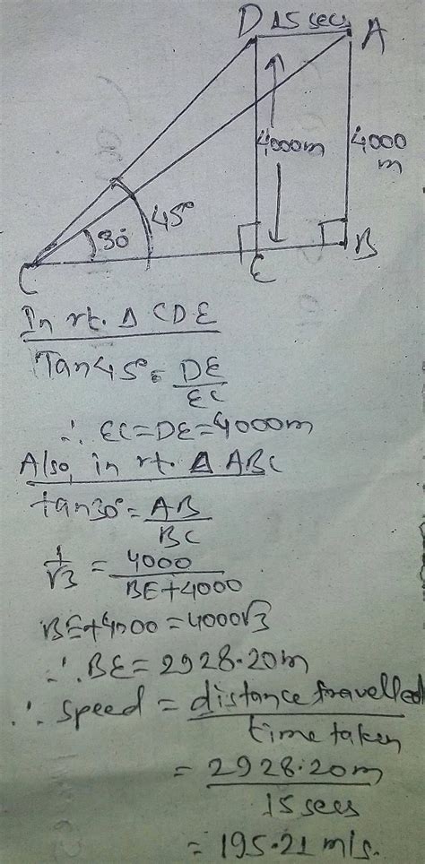 Alright, so why do we make such a fuss about this 45-degree angle of elevation ? It’s all about simplicity and that beautiful geometric relationship it creates. As I touched upon, when the angle of elevation is 45 degrees, it transforms a standard right-angled triangle into a special kind of triangle: an isosceles right-angled triangle. Let’s break that down for you, guys. Remember basic geometry? A triangle has three angles that always add up to 180 degrees. A right-angled triangle has one angle that’s exactly 90 degrees. Now, if the angle of elevation from the ground to the aeroplane is 45 degrees, that’s one of the other two angles. Using the 180-degree rule, the third angle must be 180 - 90 - 45 = 45 degrees. So, we have a triangle with angles 90, 45, and 45 degrees. Here’s the crucial part: in any triangle, sides opposite equal angles are equal in length. Since we have two 45-degree angles, the two sides opposite them must be equal. In the context of our aeroplane problem, one of these sides is the horizontal distance from the observer on the ground to the point directly beneath the aeroplane. The other equal side is the vertical height of the aeroplane above the ground. This is the magic of the 45-degree angle – height equals horizontal distance ! This relationship is incredibly useful. For instance, if you know the horizontal distance to the plane, you instantly know its height, and vice-versa. This simplifies problems immensely compared to angles like 30 or 60 degrees, where you’d need to use trigonometric ratios like tangent (tan) and deal with square roots (like tan(30) = 1/√3 or tan(60) = √3). With a 45-degree angle, tan(45) = 1, which means height/distance = 1, or simply height = distance. This makes calculating aeroplane altitude or the distance of an aircraft from an observer a breeze when this specific angle is involved. It’s a fundamental concept that pops up frequently in introductory trigonometry and physics problems, often used to illustrate these principles clearly before moving on to more complex scenarios. So, yeah, that 45-degree angle is special because it gives us this perfect 1:1 ratio between vertical and horizontal measurements, making the math way more accessible. It’s like finding a shortcut in a math problem that saves you a ton of time and effort!