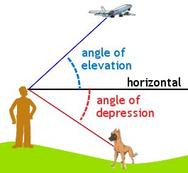 • Angle of Elevation: The angle between the horizontal line and the line of sight.