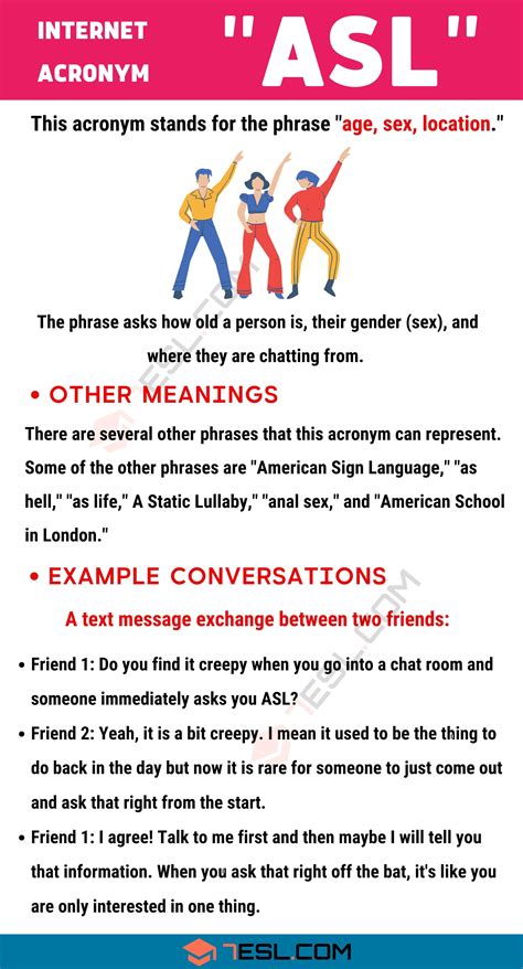 However, it’s important to note that while ASL is a common term, it’s not always used in the most appropriate or respectful way. It’s crucial to be mindful of the context and the person you’re asking. Some people might find it intrusive or even creepy to be asked for their ASL, especially if it comes out of the blue. Always consider the potential implications and be respectful of the other person’s boundaries. Using ASL responsibly ensures that online interactions remain positive and comfortable for everyone involved.
