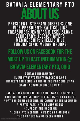 So there you have it, folks! The Batavia PTO is so much more than just a name; it’s a vibrant, active force dedicated to enhancing the educational experience for every student in our schools. Through their tireless efforts in fundraising, event organization, and community building, they provide invaluable support that strengthens our school environment. From funding essential classroom resources and technology upgrades to fostering a welcoming atmosphere where parents, teachers, and students connect, the PTO’s impact is profound and far-reaching. Their work ensures that our schools can offer enriching programs and opportunities that go beyond the basic curriculum, helping our children thrive academically, socially, and emotionally. Getting involved with the Batavia PTO is a fantastic way to contribute directly to your child’s education and the overall well-being of our school community. Whether you have a lot of time or just a little, there are numerous ways to participate and make a difference. Remember, every contribution, big or small, matters. Let’s continue to support the Batavia PTO in their mission to make our schools the best they can be. Together, we can create an even brighter future for our students.