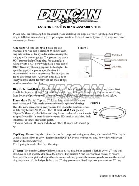 • Incorrect Ring Placement: Ensure the piston rings are installed in the correct order and with the correct orientation. Mixing up the rings or installing them upside down can cause serious engine damage.
