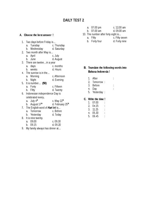 Hey everyone! Ready to give your brain a little workout today? We’re diving into Daily Test 2 , and trust me, it’s going to be a fun one. Think of it as your daily dose of mental fitness, designed to keep those neurons firing and your knowledge sharp. Whether you’re looking to ace that upcoming exam, impress your friends with your trivia skills, or just want to feel a bit smarter each day, these tests are for you. We’ve packed this edition with a variety of questions to challenge different aspects of your thinking. So, grab a coffee, settle in, and let’s get started on this exciting journey of learning and discovery. We aim to make learning accessible and enjoyable for everyone, no matter your background or current knowledge level. Our goal is to provide a platform where you can consistently engage with new information and test your understanding in a low-stakes, fun environment. This isn’t about passing or failing; it’s about the process of learning and the satisfaction of expanding your horizons. We believe that consistent, small efforts lead to significant long-term gains, and that’s exactly what Daily Test 2 is all about. So, let’s tackle these questions head-on and see what amazing things we can learn together today! Remember, the more you engage, the more you grow. Let the mental games begin!