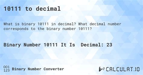 Hey there, tech enthusiasts! Ever stared at a string of 1s and 0s and wondered what they really mean? Well, today, we’re diving into the fascinating world of binary numbers and figuring out how to convert the binary number 10111 into its decimal equivalent. It’s easier than you might think, and I’m here to walk you through it step by step. So, grab your calculators (or just your brains!) and let’s get started. This process is fundamental to understanding how computers work, since all data is stored and processed in binary form. Being able to convert between binary and decimal is a key skill for anyone interested in computer science, programming, or even just understanding how digital devices operate. We’ll break down the method so that even if you’re a complete beginner, you’ll be able to follow along and grasp the concepts. By the end of this guide, you’ll not only know the decimal value of 10111 but also understand the underlying principles of binary-to-decimal conversion.