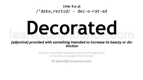 At its core, decorated means something has been adorned, embellished, or made more attractive with ornaments or other decorative items. Think of it as adding a little pizzazz ! It can apply to physical objects, spaces, or even abstract concepts like honors. When something is decorated, it’s usually done with a purpose – to make it look better, to celebrate something, or to convey a certain message. It’s not just about throwing random stuff on; it’s often about thoughtful design and arrangement. For instance, a Christmas tree is decorated with lights, baubles, and tinsel to make it festive and beautiful. A cake might be decorated with frosting, sprinkles, and edible flowers for a special occasion. A room can be decorated with paintings, rugs, and furniture to create a certain ambiance. Even a person can be decorated , not with physical ornaments, but with medals or awards for their bravery or accomplishments. So, the meaning is pretty broad, but the underlying idea is always about enhancement and beautification. It implies a transformation from a plain or ordinary state to something more special and visually appealing. It’s about adding layers of beauty, significance, or celebratory elements. This word is super versatile, and understanding its nuances can really help you nail your vocabulary.