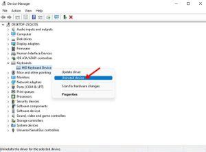 • Right-click on the keyboard you want to disable (usually the “Standard PS/2 Keyboard”).