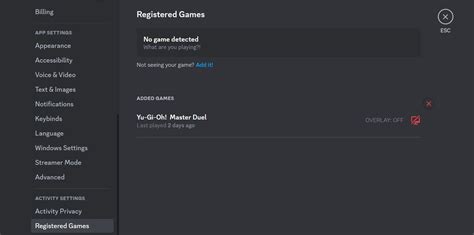 • In Discord, go to User Settings and click on Game Activity under App Settings .