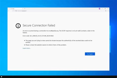Occasionally, network problems can cause hiccups in the OCSP validation process. Check your internet connection and make sure everything is working smoothly. You can also try flushing your DNS cache or using a different DNS server. Network issues can disrupt the communication between your browser and the certificate authority (CA), leading to errors in the OCSP validation process. When your browser tries to verify the validity of an SSL/TLS certificate, it needs to communicate with the CA to obtain the OCSP response. If there are network problems, such as slow internet speeds, packet loss, or DNS resolution issues, the browser might not be able to retrieve the OCSP response in a timely manner, resulting in errors like the sec_error_ocsp_future_response error. To investigate potential network issues, start by checking your internet connection to ensure that it’s stable and working properly. You can also try flushing your DNS cache to clear any outdated DNS records that might be causing resolution problems. Additionally, consider using a different DNS server, such as Google DNS (8.8.8.8 and 8.8.4.4) or Cloudflare DNS (1.1.1.1), to see if that resolves the issue. Changing DNS servers can sometimes improve DNS resolution and prevent network-related errors.