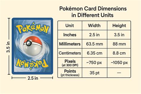 • Standard Trading Card Size: This is the size you’ll typically find in games like Magic: The Gathering , Pokémon , and sports trading cards. The physical size is 2.5 x 3.5 inches. So, what’s that in pixels? Well, it depends on the resolution (DPI - dots per inch) you’re using. We’ll break that down in a bit.