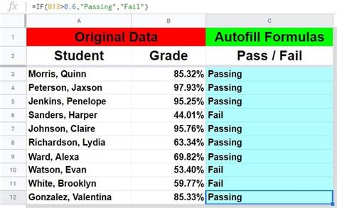 IF statements are incredibly powerful, and they become even more so when nested inside ARRAYFORMULA() . Let’s say you have scores in column A, and you want to categorize them as “Pass” (>= 60) or “Fail” (< 60) in column B.