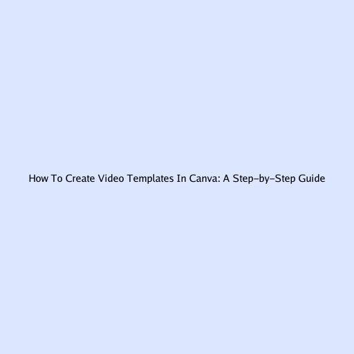 How to Create Video Templates in Canva: A Step-by-Step Guide