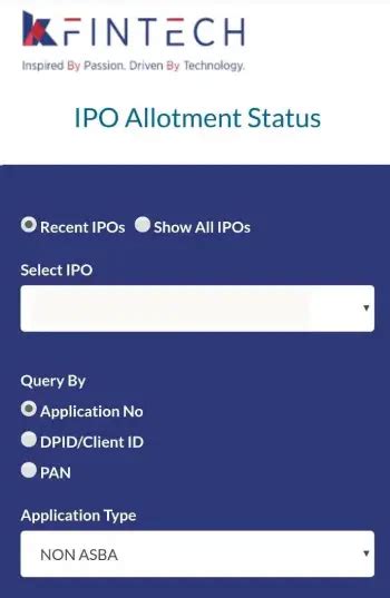 3. Enter Your Details: On the IPO status page, you’ll be prompted to enter specific details. This typically includes your Application Number , which is a unique identifier for your IPO application. You might also need to enter your PAN number or DP (Depository Participant) ID and Client ID.