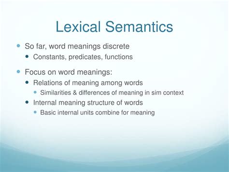 Alright, let’s get down to brass tacks, guys. When we talk about lexical semantics , we’re essentially talking about the study of word meaning . It’s a fundamental part of linguistics, and it tackles some pretty big questions. How do words acquire their meaning in the first place? Is it something inherent, or is it something we collectively agree upon? Lexical semantics dives into the relationship between words and the concepts or things they represent in the real world, or even in our imaginations. It’s not just about looking up definitions in a dictionary; it’s about understanding the deeper layers of meaning, the nuances, and the subtle differences between words that seem similar. Think about synonyms like “big” and “large.” While they often overlap, there are contexts where one feels more appropriate than the other. Lexical semantics tries to explain why . It examines the internal structure of word meanings, often referred to as lexical concepts or semantic features . For instance, the word “bachelor” might be broken down into features like [+HUMAN], [+MALE], [+ADULT], and [-MARRIED]. By analyzing these features, linguists can understand how words relate to each other and how meaning is constructed. It also looks at how words are organized in our minds, forming complex semantic networks. When you hear the word “dog,” your brain doesn’t just activate that single word; it likely brings up related concepts like “bark,” “pet,” “animal,” “fur,” and even specific breeds. This interconnectedness is a huge part of what lexical semantics explores. It’s about understanding the very essence of what makes a word, a word , and how its meaning is conveyed and understood by us humans. It’s the linguistic detective work that helps us crack the code of communication!