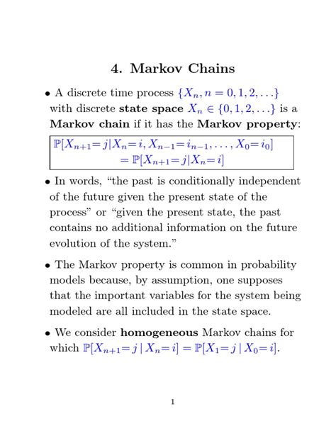 Alright, let’s get down to brass tacks. At its core, a Markov chain is a mathematical system that experiences transitions from one state to another based on certain probabilities. The key thing to understand here, and this is what makes it a “Markov” chain, is something called the Markov property . This property states that the probability of transitioning to any particular future state depends only on the current state, and not on the sequence of events that preceded it. Think of it like this: the future is independent of the past, given the present. It’s like playing a game where your next move only depends on where you are right now , not on how you got there. This memoryless property is what simplifies things so much and makes Markov chains incredibly useful for modeling a wide range of phenomena. We’re talking about sequences of possible events – the “states” – and the probabilities that govern the movement between these states. So, whenever you hear “Markov chain,” remember: it’s all about states and the probabilities of moving between them, with that crucial “no memory” rule.