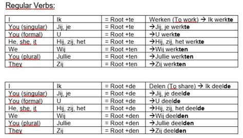 Let’s kick things off with the imperfectum , or the simple past tense. Guys, this is your go-to for describing actions that happened and finished at a specific point in the past. Think of it like the traditional past tense you might be used to in English, but with its own Dutch flair. The main thing to remember is that it’s formed by taking the stem of the verb – which you usually get by chopping off the ‘-en’ from the infinitive – and adding specific endings. For regular verbs, the endings are generally ‘-de’ if the stem ends in a ‘voiced’ consonant (like b, d, g, v, z, l, m, n, r) or ‘-te’ if it ends in a ‘voiceless’ consonant (like p, t, k, f, s, ch, sch). So, if your verb stem ends in a ’t’ or a ’d’, you add ‘-e’ to ‘-de’ or ‘-te’ to make it ‘-de’ or ‘-te’ respectively. Wait, that sounds confusing, right? Let’s simplify: if the stem ends in a t or a d , you add ‘-e’ and then ‘-n’ for the plural forms (‘wij’, ‘jullie’, ‘zij’). So, it’s the famous ’t kofschip rule, but for the past tense! If the stem ends in one of those letters (t, k, f, s, ch, p), you use ‘-te’ + ‘n’ for plural. Otherwise, you use ‘-de’ + ‘n’ for plural. For example, with the verb lopen (to walk), the stem is loop . Since ‘p’ is in ’t kofschip’, you’d say ik liep (I walked) and wij liepen (we walked). For werken (to work), the stem is werk . ‘k’ is also in ’t kofschip’, so it’s ik werkte (I worked) and wij werkten (we worked). Now, what about verbs like spelen (to play)? The stem is speel . ‘l’ is not in ’t kofschip’, so it’s ik speelde (I played) and wij speelden (we played). Easy peasy, right? The imperfectum is super useful for painting a picture of the past, like telling a story about your vacation or describing a historical event. It gives your narrative a sense of completeness and finality. So, next time you want to recount a past event in a more formal or descriptive way, reach for the imperfectum. Just remember the ’t kofschip’ rule for the endings, and you’ll be golden!