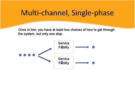 Think about a large airport check-in and security process. This is a classic example of a multi-channel, multi-phase system . When you first arrive at the airport, you might go to a check-in area. Here, there are often multiple check-in counters (multi-channel) all serving customers who are in the