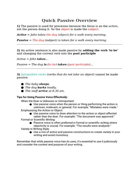The big question, guys, is why do so many writing guides and teachers tell you to avoid the passive voice like the plague? Well, there are some solid reasons, and it’s important to know them so you can make informed decisions. The primary criticism of the passive voice is that it can often make sentences sound weaker, wordier, and less direct than their active counterparts. When you use the passive voice, you often obscure who is actually doing the action. Take “ Mistakes were made .” Who made them? We don’t know! This vagueness can be a problem if clarity and accountability are important. Imagine a news report saying, “ The building was damaged. ” This doesn’t tell you if it was an accident, an act of vandalism, or something else entirely. The active voice, “ A storm damaged the building ” or “ The vandals damaged the building ,” immediately provides more information and a clearer picture. Furthermore, passive constructions often require more words. Compare “ She wrote the report ” (4 words, active) to “ The report was written by her ” (6 words, passive). That extra word count can add up, especially in longer pieces, potentially making your writing feel sluggish. Because it can hide the actor and add unnecessary words, the passive voice is often seen as a way to sound more formal, evasive, or even pretentious. This is why, in many contexts like creative writing, journalism, or business communication where directness and clarity are paramount, actively leaning on the active voice is generally recommended. It keeps your writing punchy, engaging, and easy for your readers to follow. So, when you’re aiming for impact and straightforwardness, the active voice is usually your best bet. However, this doesn’t mean the passive voice is never appropriate; it just means you need to be aware of its potential pitfalls and use it with intention.