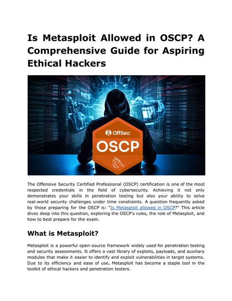Hey guys, let’s dive deep into the powerhouse that is Metasploit and how it becomes your absolute best friend when you’re gunning for that OSCP certification. Seriously, if you’re aiming to conquer the Offensive Security Certified Professional (OSCP) exam, understanding and mastering Metasploit isn’t just recommended; it’s essential . Think of Metasploit as your digital Swiss Army knife for penetration testing. It’s an open-source framework packed with a ridiculous amount of exploits, payloads, and auxiliary modules that can help you find vulnerabilities and then, bam, exploit them. For the OSCP, you’re not just expected to know what Metasploit is; you’re expected to use it effectively and efficiently under pressure. This means knowing its modules inside and out, understanding how to customize payloads, and being able to script your way through tasks when a standard exploit won’t cut it. We’re talking about leveraging its power to gain initial access, escalate privileges, and maintain persistence – all crucial steps in any real-world penetration test and, by extension, the OSCP lab environment. So, buckle up, because we’re going to break down why Metasploit is so critical for OSCP success and how you can really own it.