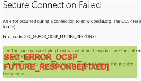 So, let’s dive a bit deeper into this sec_error_ocsp_future_response error. At its core, this error pops up because of a mismatch in time. When you visit a website, Firefox checks its security certificate to make sure it’s legitimate and hasn’t been compromised. Part of this check involves a system called OCSP, which asks a Certificate Authority (the folks who issue these digital certificates) if the certificate is still valid. The problem arises when the OCSP response Firefox receives from the server indicates a future date. Essentially, the server is telling Firefox, “This certificate is valid, but not until tomorrow !” This is obviously a problem because you’re trying to access the website today . It’s like getting a package delivery confirmation for a date that hasn’t happened yet – it just doesn’t make sense in the real world. This temporal confusion usually stems from a misconfiguration on the server hosting the website, or sometimes, believe it or not, it can be an issue with your own computer’s clock. If your computer’s date and time are significantly off, it can lead to all sorts of security-related glitches, including this one. The primary reason behind this error is that the OCSP responder, which is responsible for providing real-time status updates for digital certificates, is sending back a response that is dated in the future. This makes Firefox, and rightfully so, skeptical about the validity of the website’s security. It’s a fail-safe mechanism to prevent potential security breaches. Firefox is designed to be secure, and when it detects something that doesn’t add up, like a future-dated security confirmation, it throws up this error to protect you. It’s a good thing, really, even if it’s annoying! It means Firefox is doing its job to keep you safe from potentially malicious or misconfigured sites. So, while you might be tempted to just click away and ignore it, understanding the root cause is the first step to a speedy resolution.