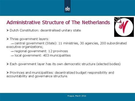 Okay, so the Netherlands is a unitary state . But what does that actually look like in practice? Well, in the Netherlands, the central government is responsible for making laws, setting national policies, and overseeing their implementation. The Dutch Parliament (Staten-Generaal) is the main legislative body, composed of two chambers: the House of Representatives (Tweede Kamer) and the Senate (Eerste Kamer). They debate and pass laws that apply to the entire country. The executive branch, led by the Prime Minister and the cabinet, is responsible for executing these laws and running the government. Now, the Netherlands is divided into twelve provinces (provincies), and each province has its own government (Provinciale Staten). These provincial governments have responsibilities like managing infrastructure, planning, and environmental protection. Below the provinces are municipalities (gemeenten), each with its own municipal council (gemeenteraad) and mayor (burgemeester). Municipalities handle local services like waste management, public transportation, and local planning. However, the powers and responsibilities of both the provinces and the municipalities are defined by the central government. They act as administrative arms of the central government, implementing national policies at a local level. This structure allows the Netherlands to have a high degree of administrative efficiency and ensures that national policies are implemented consistently throughout the country. It also allows the central government to maintain a strong level of control over the provinces and municipalities, although they do enjoy a degree of autonomy in carrying out their functions. The central government provides funding and sets guidelines, but local governments have some flexibility in how they implement these policies. This is all thanks to the Netherlands unitary state structure, which ultimately determines the way the country’s governance system operates.