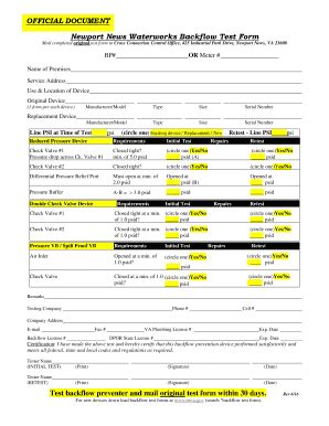 Newport News Backflow Test Form Guide