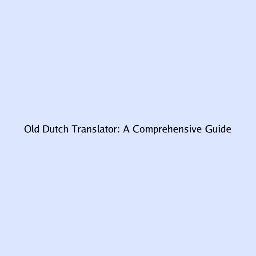 Old Dutch Translator: A Comprehensive Guide