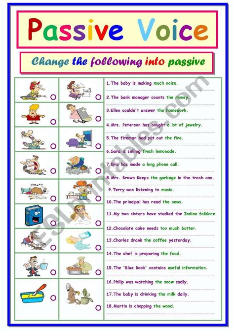 • Error Correction: These exercises present sentences with errors in the passive voice, and you need to identify and correct them. This is a good way to develop your eye for detail.