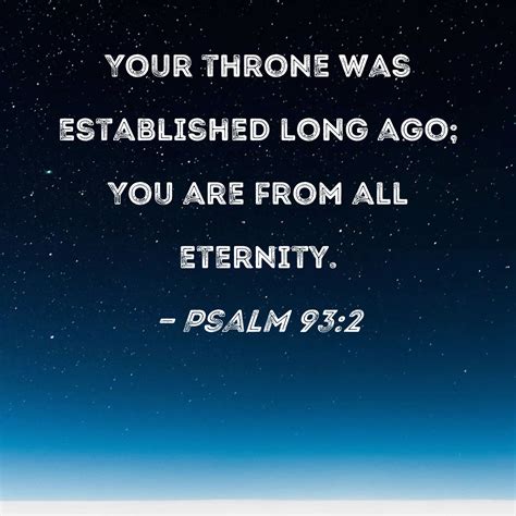 Hey guys, let’s dive into Psalm 93:2 , a verse that really speaks volumes about God’s power and sovereignty. This particular verse, often found in discussions about divine authority, states: “Your throne is established of old; You are from everlasting.” It’s a pretty profound statement, right? When we talk about Psalm 93:2 , we’re essentially looking at a declaration of God’s eternal nature and His unshakeable authority. This isn’t just some fleeting power; it’s a dominion that has existed from the very beginning and will continue forever. Think about that for a second – everlasting . It means God’s rule isn’t temporary, it’s not dependent on human circumstances, and it certainly can’t be challenged or overthrown. The Psalmist is painting a picture here of a God who is not only powerful but has been powerful since time immemorial, and will remain so eternally. This concept of God’s everlasting throne is a cornerstone of faith, offering immense comfort and security to believers. It reassures us that no matter what chaos or uncertainty we might face in the world, there is an ultimate, stable power in control. The strength of this verse lies in its simplicity and directness, yet its implications are vast. It challenges us to consider our own place in relation to this eternal King and encourages a posture of reverence and trust. So, when you come across Psalm 93:2 , remember it’s a powerful reminder of who God is – eternal, sovereign, and utterly dependable.