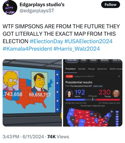 Of course, no discussion of Simpsons predictions would be complete without exploring some of the fan theories floating around the internet. Fans have scoured countless episodes, searching for any hint or clue that might foreshadow the outcome of the 2024 election. Some theories are based on specific scenes or lines of dialogue, while others are more general interpretations of the show’s overall political commentary. One popular theory suggests that The Simpsons might predict a close and contested election, similar to the 2000 election between George W. Bush and Al Gore. This theory is based on the show’s recurring theme of political chaos and incompetence, as well as its tendency to satirize the electoral process. Another theory posits that The Simpsons might predict a third-party candidate gaining significant traction in the 2024 election. This theory draws on the show’s history of introducing unconventional characters and storylines, as well as its willingness to challenge the status quo. Some fans have even pointed to specific episodes that they believe contain hidden clues about the 2024 election. For example, one episode features a scene with a map of the United States that appears to show certain states colored in a way that could be interpreted as a prediction of the election results. While these fan theories are often speculative and far-fetched, they highlight the enduring fascination with The Simpsons ’ prophetic abilities. They also serve as a reminder that the show’s political satire is open to interpretation and can spark lively discussions among fans.