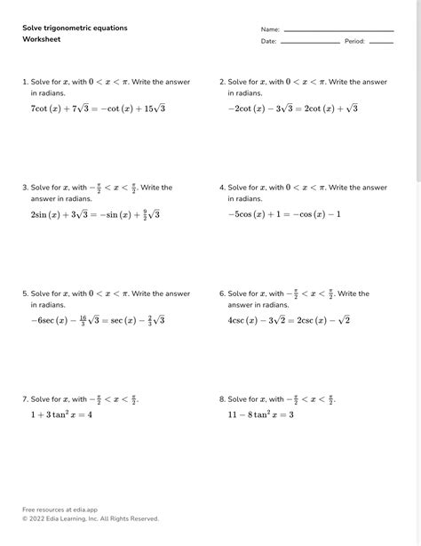 • Know Your Identities : Memorize the key trigonometric identities. These will significantly simplify the equations, and allow for efficient problem-solving. Make sure you understand how to use these identities and know when to apply them. These are like having shortcuts in your toolkit, making problem-solving more efficient.