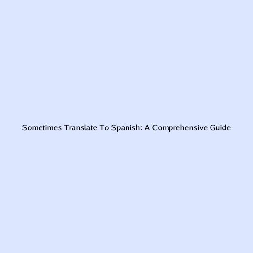 Sometimes Translate to Spanish: A Comprehensive Guide