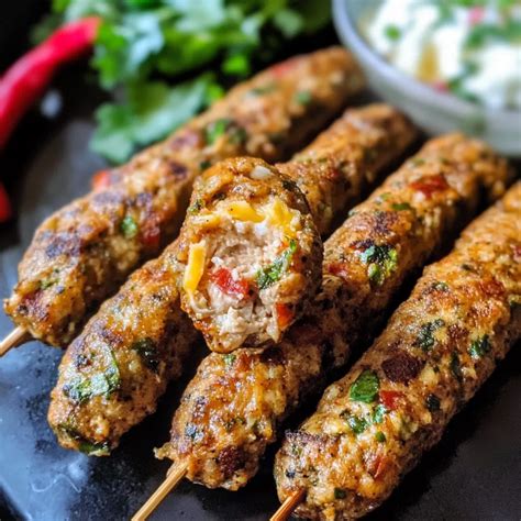 You've done it! You've created the most amazing cheddar kebabs , and now it's time to serve them up. The best way to enjoy these flavor bombs is fresh off the grill while the cheese is still warm and gooey. Serve them immediately! They’re fantastic on their own, allowing the pure flavor of the marinated meat and melted cheddar to shine. However, if you want to round out the meal, there are tons of delicious accompaniments that pair perfectly. Think fluffy pita bread or warm naan bread for scooping up any extra cheesy goodness that might drip off. A fresh, crisp salad with a zesty vinaigrette provides a lovely contrast to the richness of the kebabs. Some cool, creamy tzatziki sauce or a dollop of sour cream can also be incredibly refreshing alongside the savory, cheesy meat. Grilled vegetables, like corn on the cob or asparagus, complement the smoky flavors from the grill.