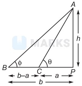 From these two equations, we can express the height ‘h’ in terms of the distances and the angles: