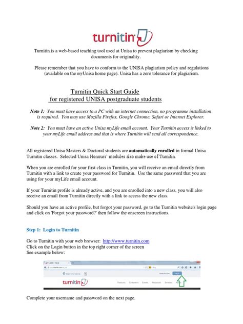Important Note: Familiarize yourself with the different features and tools available in the Turnitin interface. This will help you navigate the platform more efficiently and make the most of its capabilities. For example, learn how to download your originality report, view instructor feedback, and resubmit assignments if necessary.
