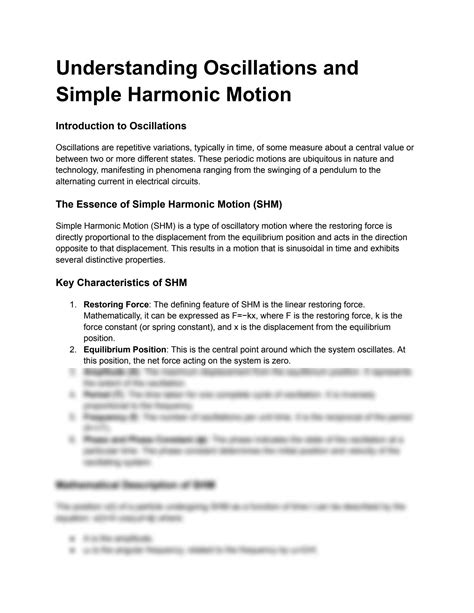 Understanding Oscillations And Harmonic Motion