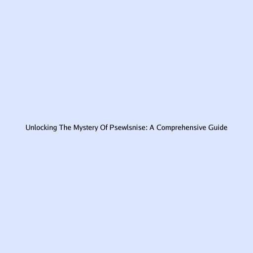 Unlocking the Mystery of Psewlsnise: A Comprehensive Guide