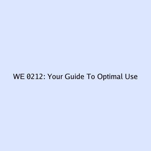 WE 0212: Your Guide to Optimal Use