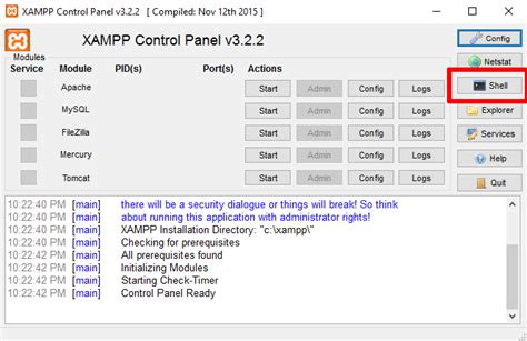 6. Using the Shell: The Control Panel also includes a “Shell” button, which opens a command-line interface (CLI) with the XAMPP environment loaded. This allows you to run commands directly on the server, such as PHP scripts or MySQL queries. This is especially useful for advanced users who prefer working with the command line.